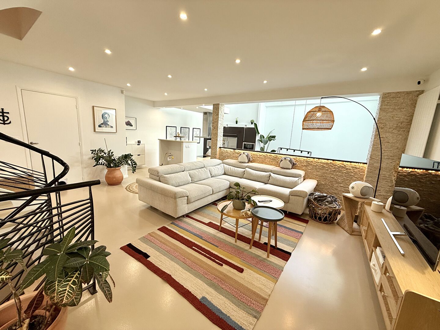 LES SABLONS- Maison de caractère lumineuse de 4 pièces principales d'une superfice de 77 m² habitables (95 m² sol) entièrement rénovée, profitant d'une triple orientation et de 2,80 mètres de hauteur sous plafond environ : entrée, séjour, cuisine dîn...