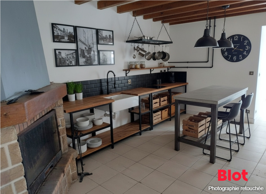 Elle comprend au rez-de-chaussée une cuisine aménagée, un séjour/salon avec cheminée insert, dégagement desservant une salle de ...
