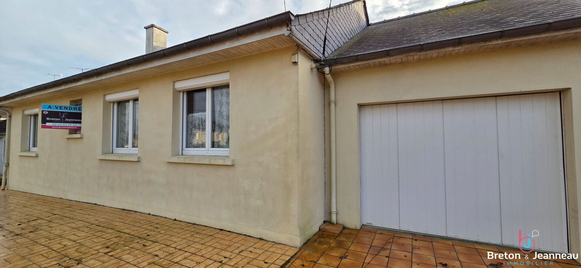 St Ouen des Toits, un pavillon de plain pied de 1996. il comprend une entrée avec placard, une cuisine ouverte sur le séjour -salon, 2 chambres, une salle de bains et un wc. Garage. Terrain d'environ 361m2. Chauffage gaz (chaudière de 2021). Disponible fi...