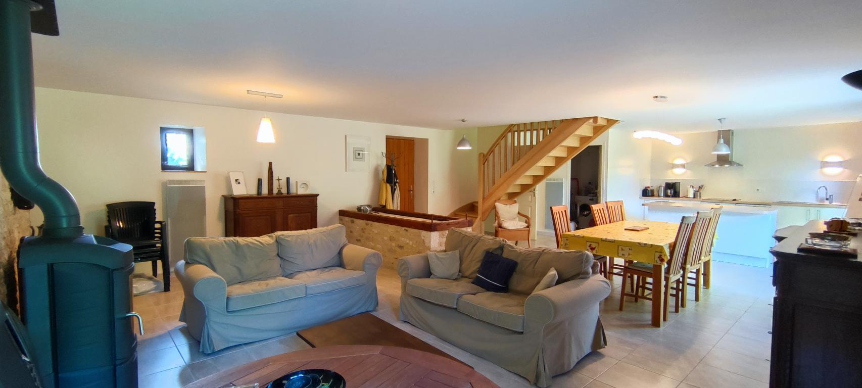 Charmante grange rénovée entre 2001 et 2009 par des artisans locaux. De très belle facture. Avec de plain-pied, une cuisine ouverte sur salon-salle à manger, buanderie, W.C. A l'étage, un large palier pouvant faire office de bureau, 3 chambres, W.C. et Sa...