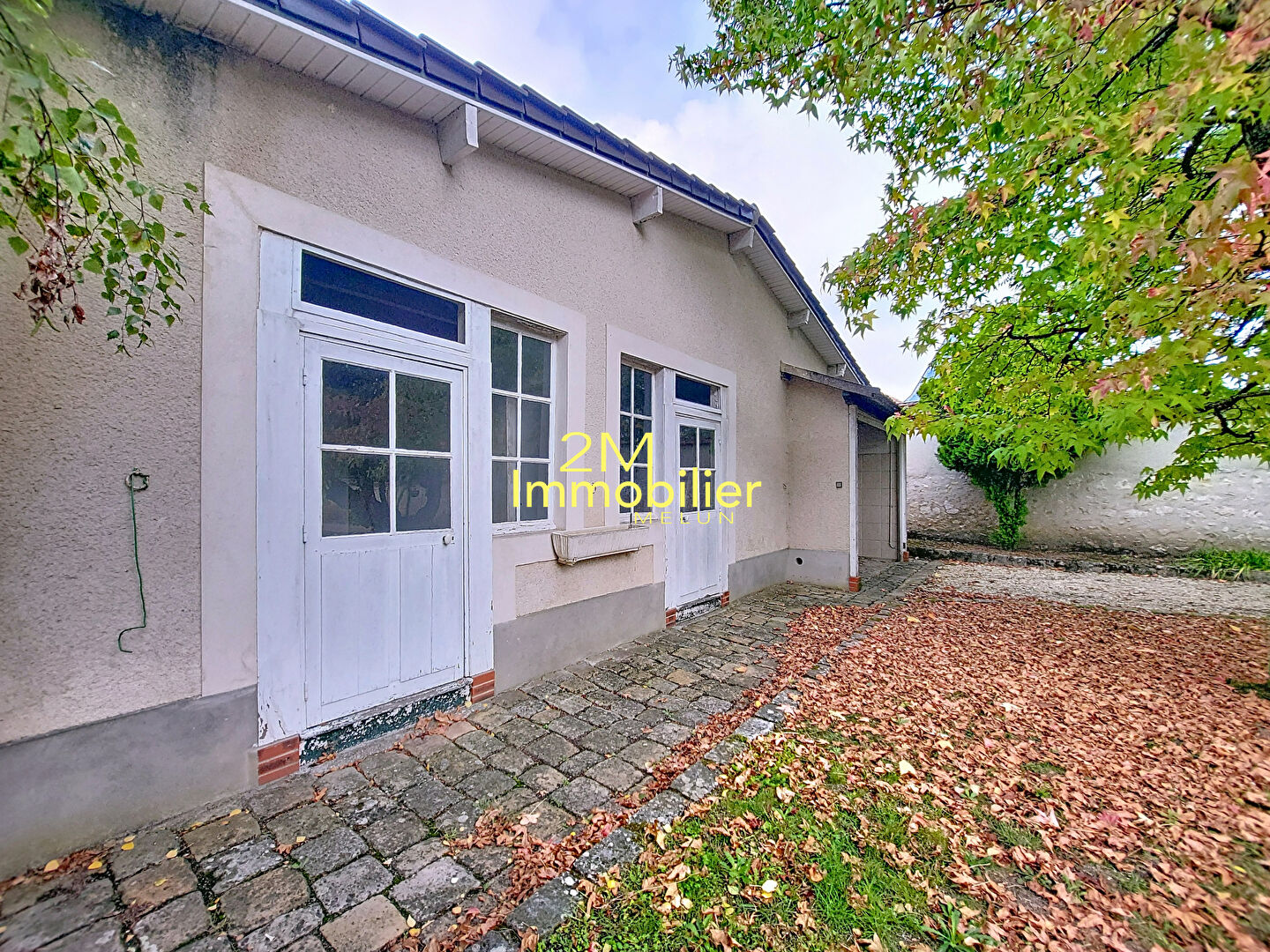 Jolie maison ancienne élevée sur sous-sol total comprenant entrée, cuisine équipée, salle à manger, séjour double, 3 chambres, bureau, salle de bains avec wc, wc, buanderie, garage.