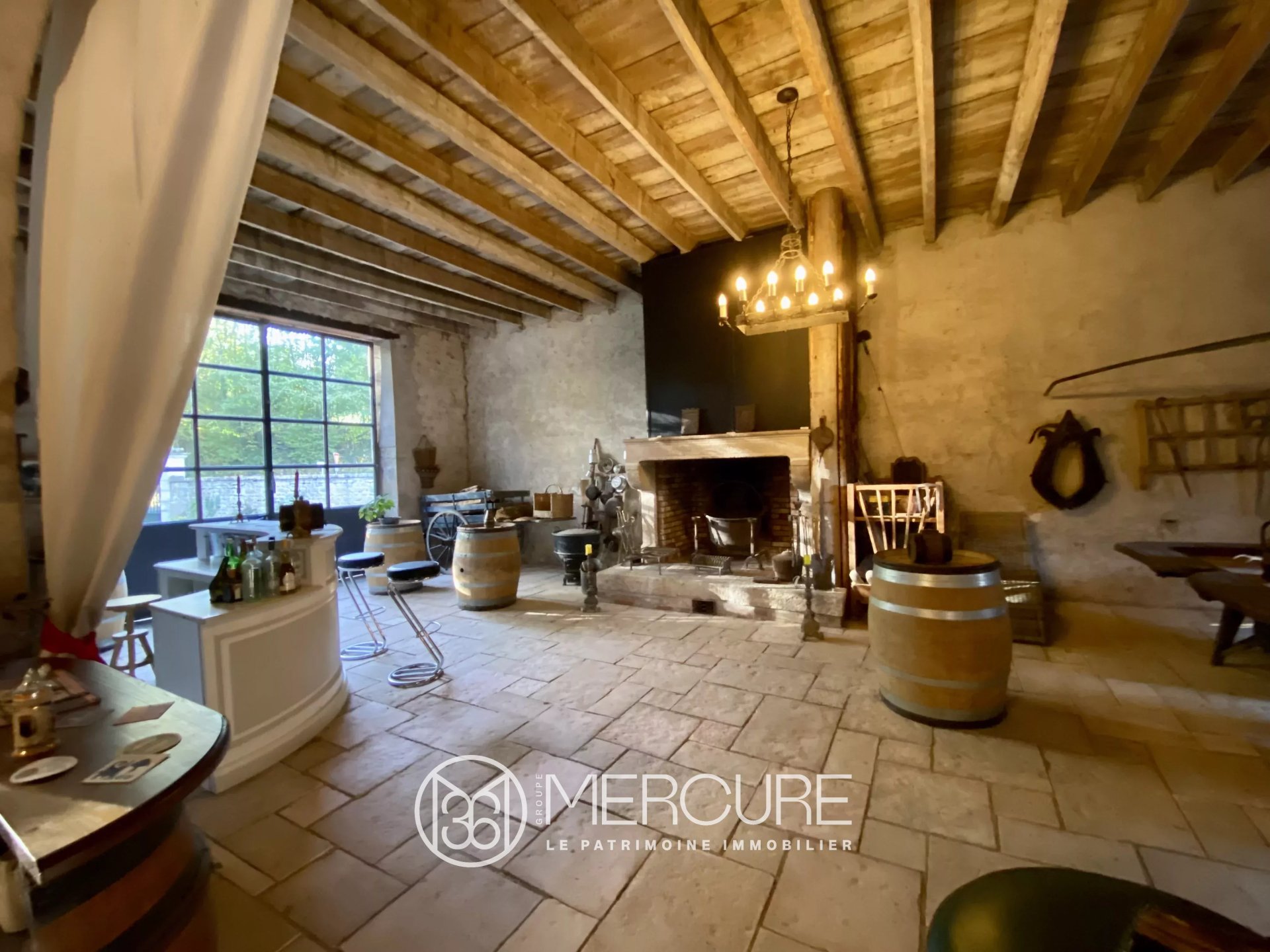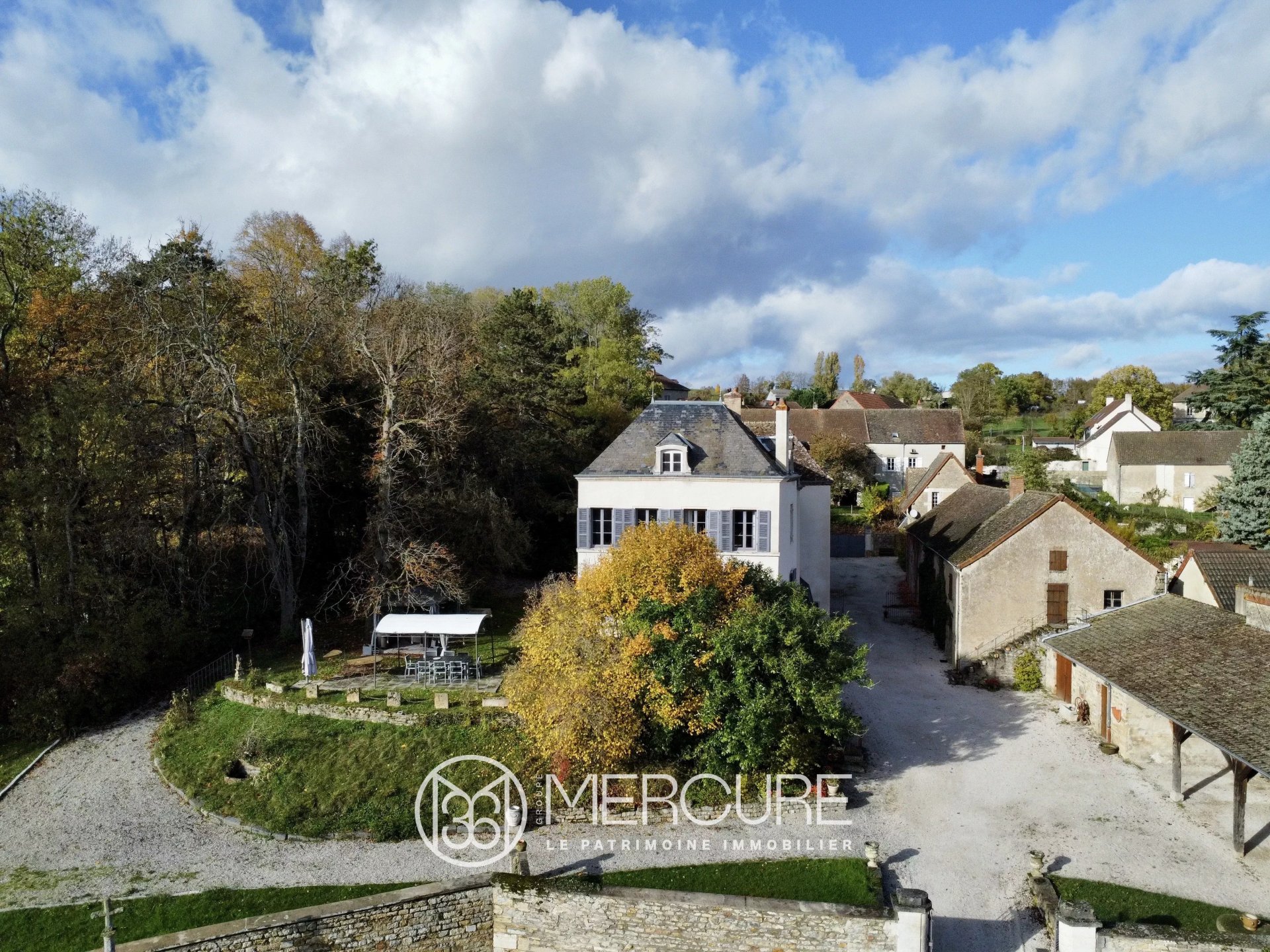 Située à MERCUREY, village viticole à 15 min de Chalon et de l'autoroute, 30 min de la gare TGV, cette propriété de caractère, flanquée d'une tour, offre une vue dégagée sur le vignoble et s'étend sur un parc arboré de 3652 m².
