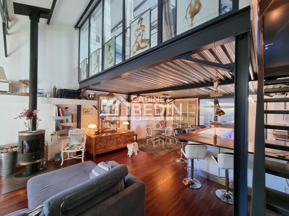 MERIGNAC LOFT PROCHE TRAM A. A deux pas du tram A (direction Bordeaux/Aéroport de Mérignac) au calme d'une petite copropriété sécurisée, ce loft a été réalisé dans le pur style industriel. Il comprend un vaste séjour cathédrale avec poêle à bois et climat...