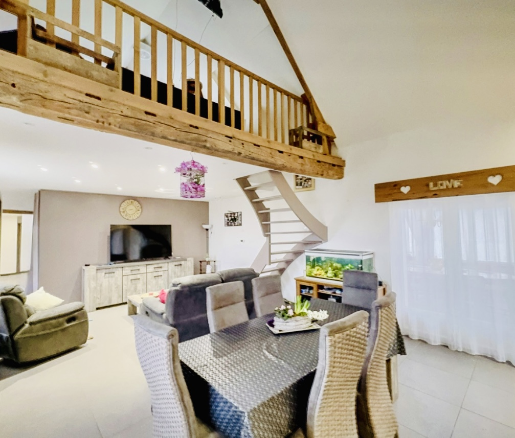 L'Agence immobilière CLEF EN MAIN vous propose sur la commune de MERVILLE (59660) cette maison individuelle en configuration semi plain-pied On retrouve Au rez-de-chaussée, un Vaste Séjour de 39 m2 avec cheminée feu de bois, une Cuisine équipée de 15 m2 u...