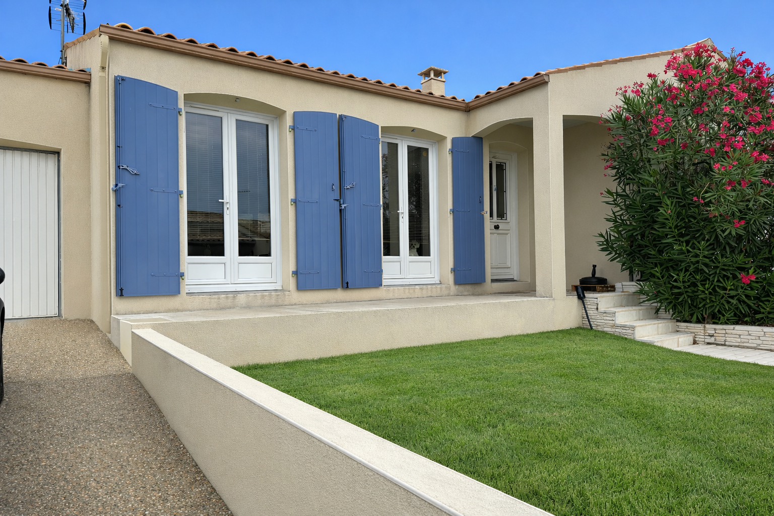 Belle maison de 170m2 sur terrain de 785 m2 ombragé avec deux belles terrasses sans vis avis donnant sur la verdure, une sur le côté de la maison et une à l'arrière avec un barbecue aménagé et un coin douche pour le retour de plage . Cette maison vous séd...