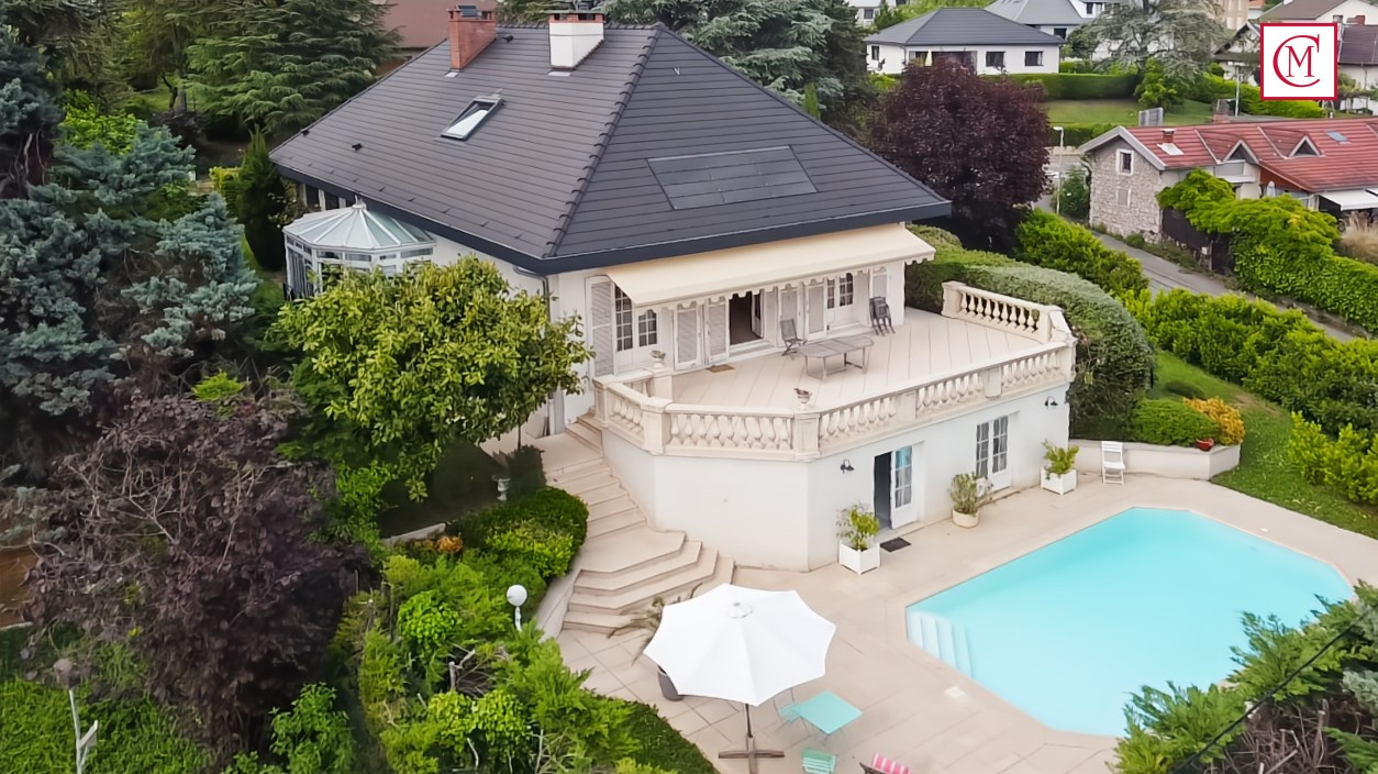 Haut Meylan - Villa de standing de 186m2 habitable,281m2 utile sur un terrain clos et arboré de 1138m2 avec piscine et pool house offrant une belle vue sur Belledonne et Chartreuse.