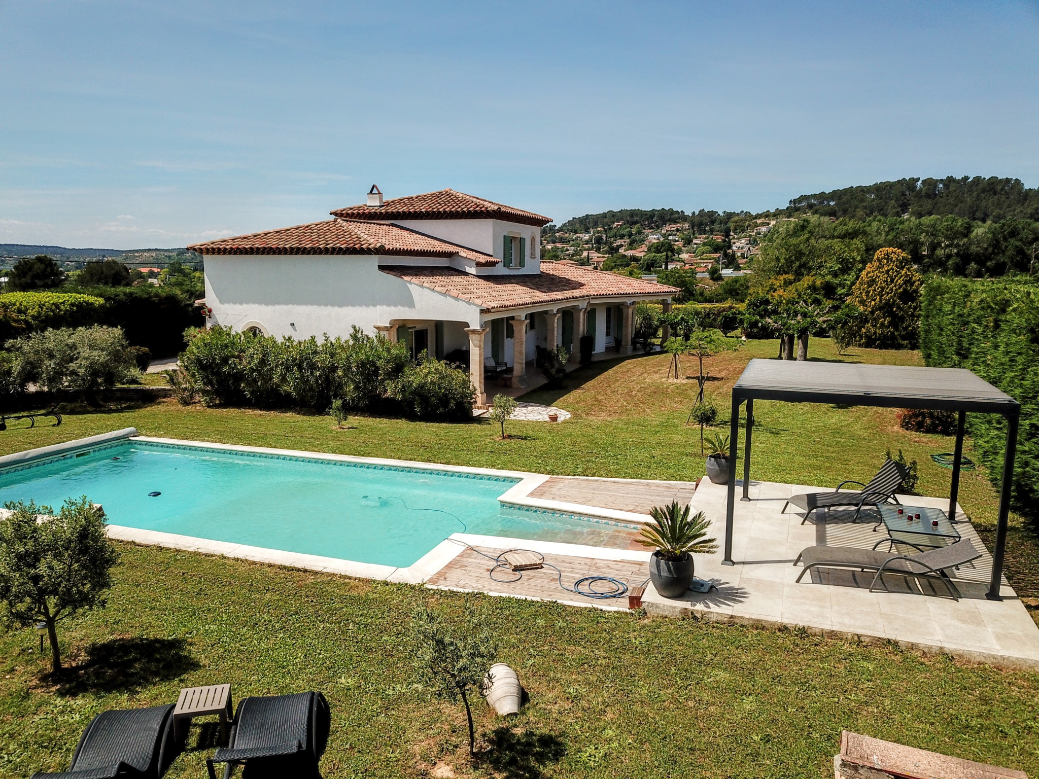 Meyreuil, villa d'environ 193 m2 sur 3856 m2 de terrain bénéficiant d' une magnifique vue sur la Sainte Victoire avec piscine et cuisine d'été. Grandes pièces à vivre et beaux volumes de partout, séjour avec plafond cathédrale de 60m2 avec chemi...