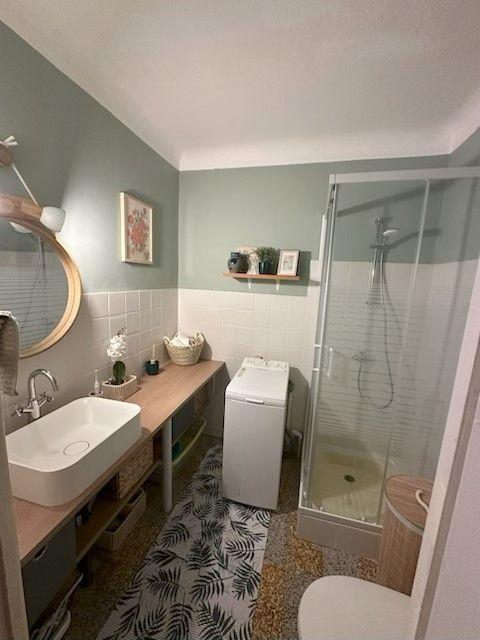 Fiche Id-162368 : CENTRE VILLE : Maison de plain pied entièrement rénovée, sur terrain de 380 m2, sans vis à vis, séjour cuisine équipée, 2 grandes chambres avec placard, une salle d'eau douche à l'italienne, un wc, un grand garage porte automatisé...