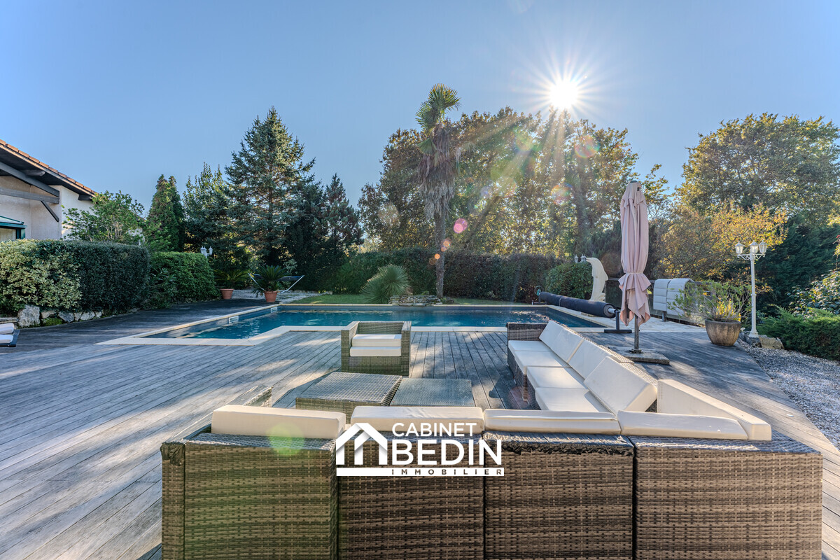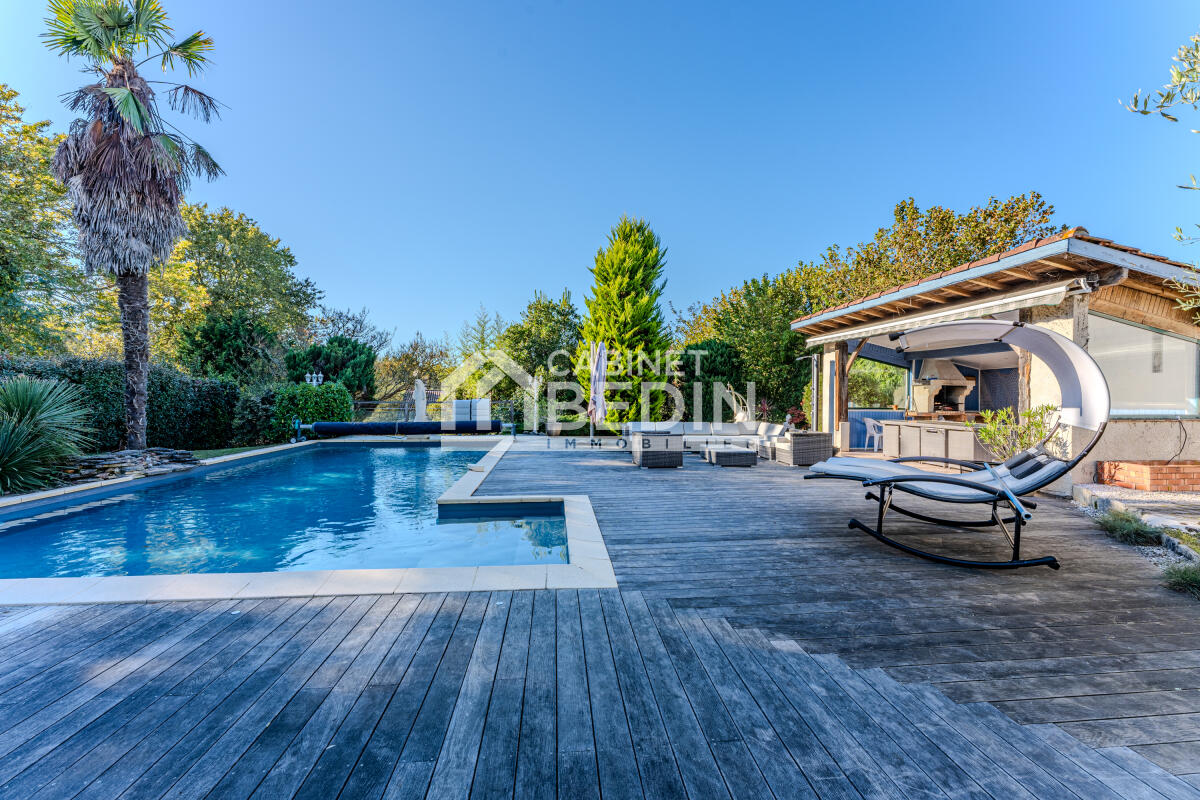 A39381EPR33 - Propriété d'exception à Mios - 11 pièces, 300 m², parc paysager d'1 ha. Anciennes écuries rénovées, séjour lumineux avec cheminée, 6 chambres, piscine chauffée, double garage, calme et proche centre-ville. À visiter sans tarder !