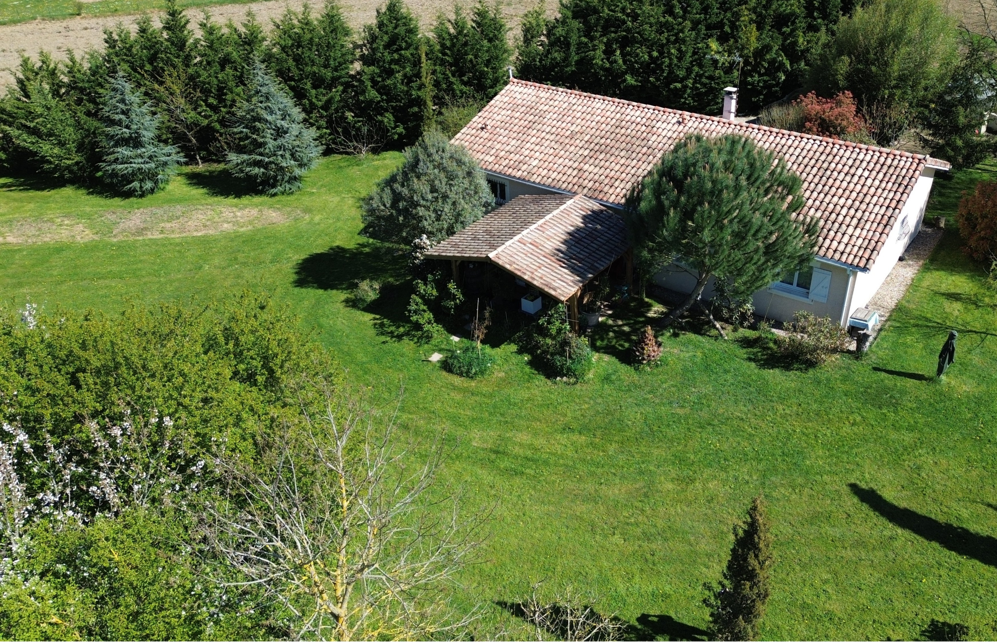 A38997GJP47 - Charmante maison contemporaine sur un terrain arboré de plus de 8 800 m², avec accès par portail electric. La maison offre une pièce de vie lumineuse de 72 m² avec salon, salle à manger et cuisine ouverte équipée, cinq baies vitrées, chauffage a...
