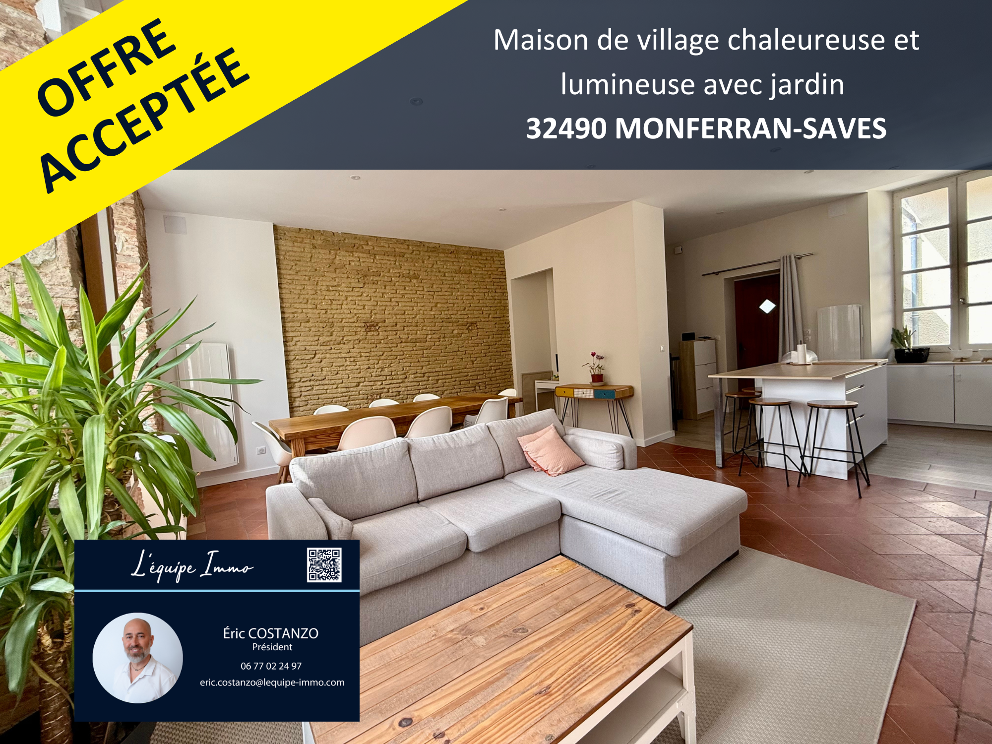 Située au coeur du village de Monferran-Saves, cette maison séduira les amoureux de l'ancien avec ses tomettes, ses briques foraines et son atmosphère chaleureuse.