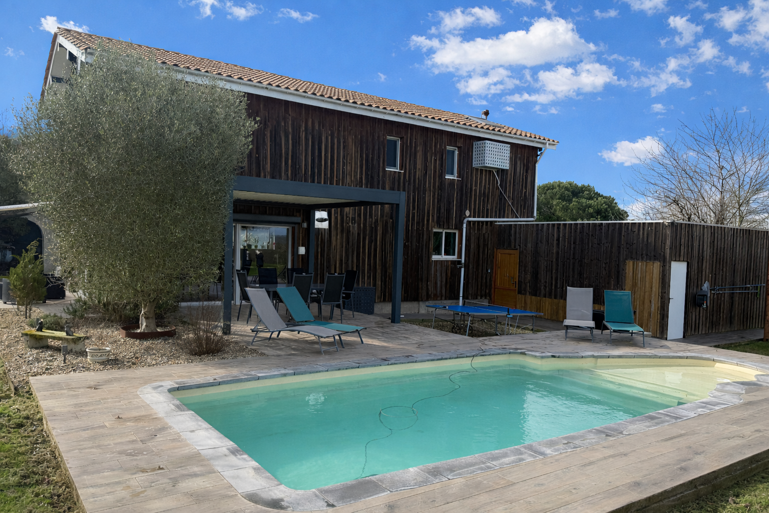 Dans un environnement calme et verdoyant, venez décourir l'architecture originale d'un séchoir aménagé en habitation . Vous disposerez d'un bel espace de vie avec une cuisine ouverte donnant sous une pergola bioclimatique qui borde la piscine. A...