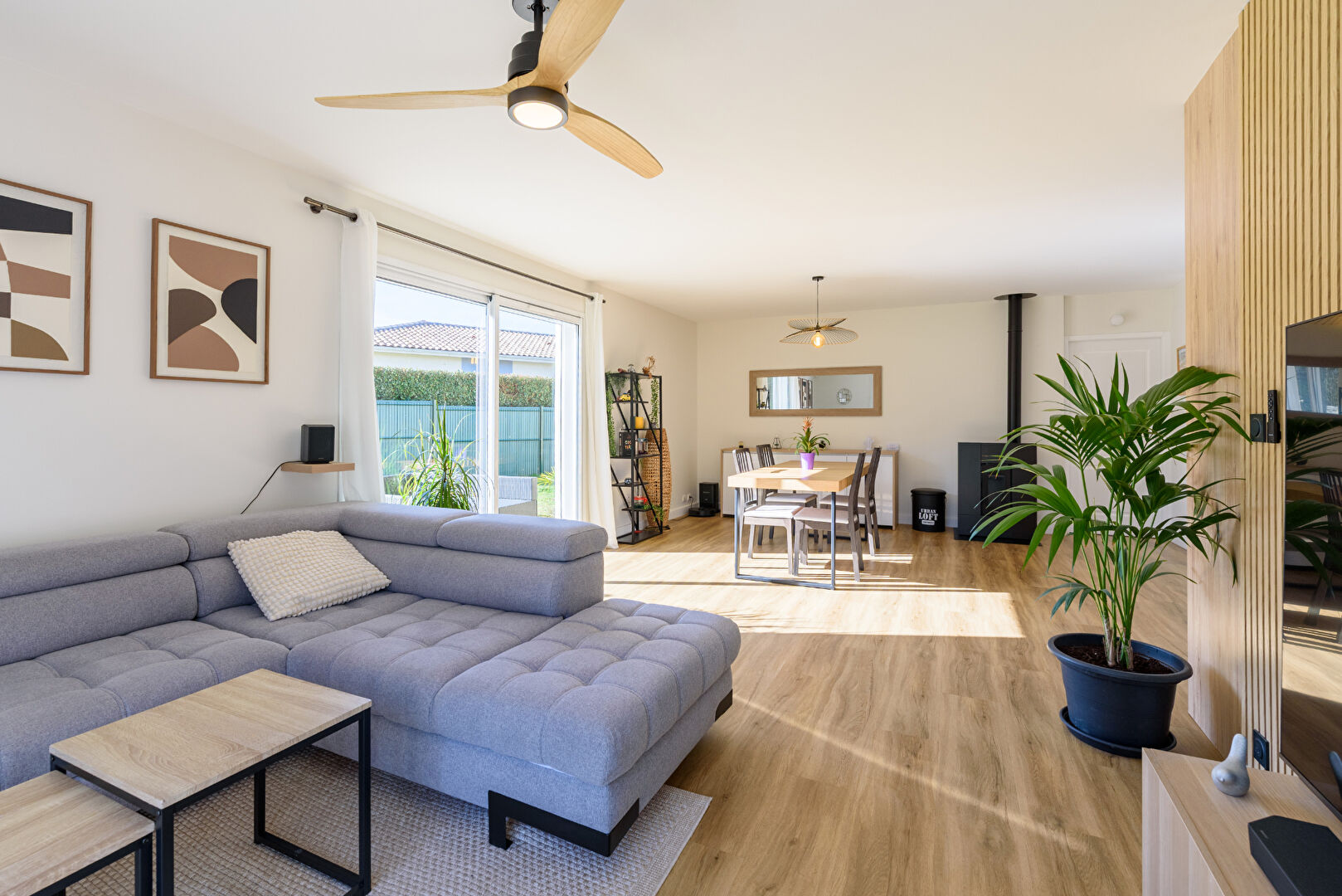Maison basco-landaise d'environ 145m², située en bout d'impasse sur un terrain arboré de 914m². Elle offre une cuisine récente climatisée et entièrement équipée avec buanderie, un vaste séjour-salle à manger lumineux avec cheminée fonctionnelle, ains...