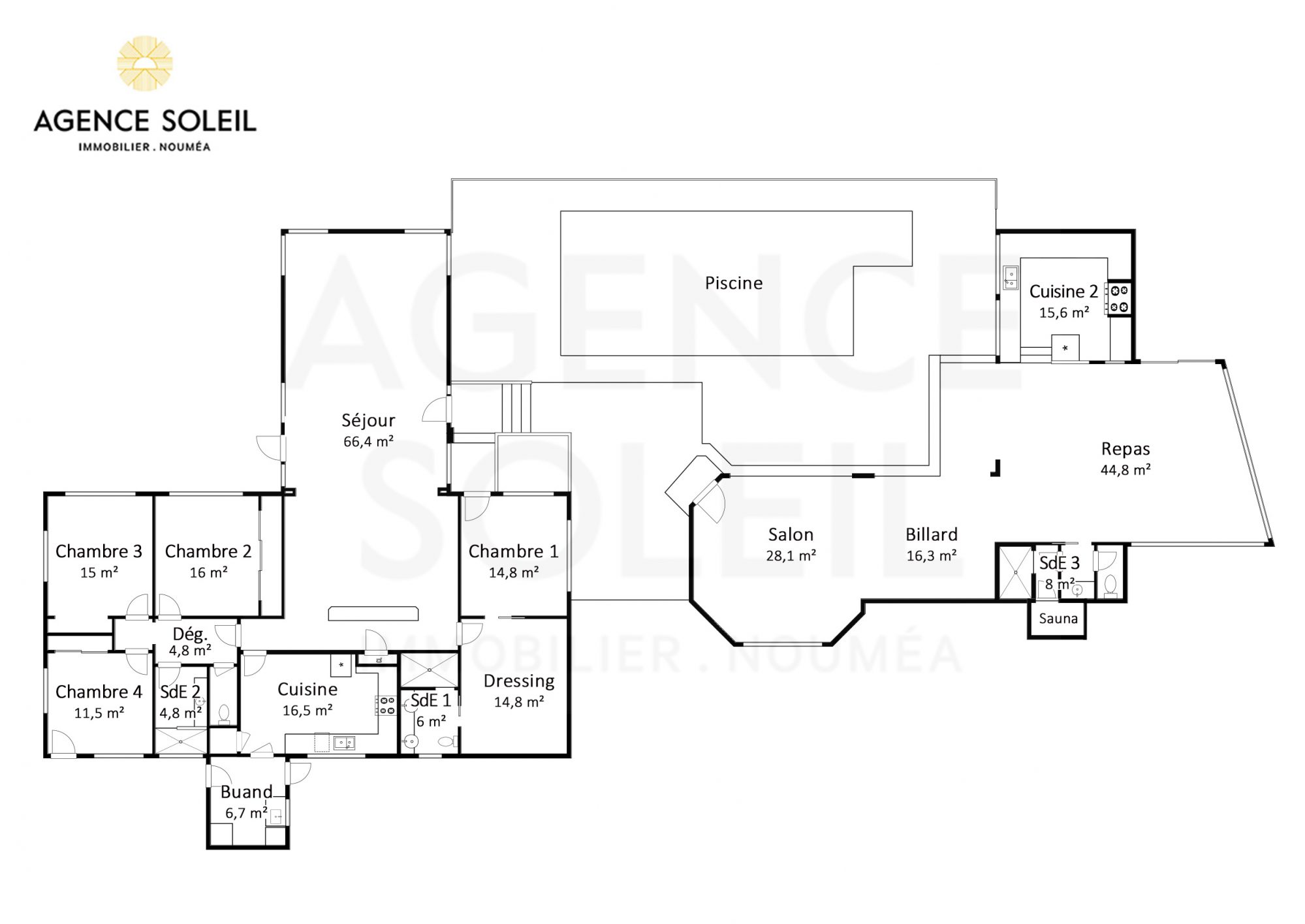Le bâtiment principal de 180 m² comprend un double séjour de 66 m²...