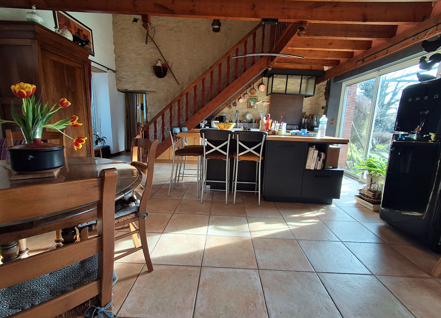 Vous découvrirez une belle pièce de vie conviviale avec cheminée, ouverte sur la cuisine, idéale pour les moments en famille ou en...