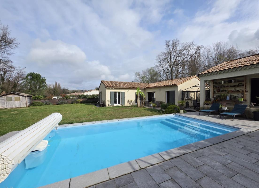 Villa de charme plain-pied de 147m² avec piscine chauffée et sécurisée sur un terrain clôturé et arboré d'environ 807m² secteur très recherché pour sa tranquillité.
