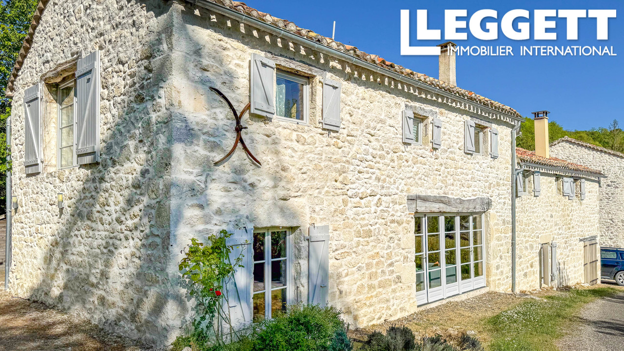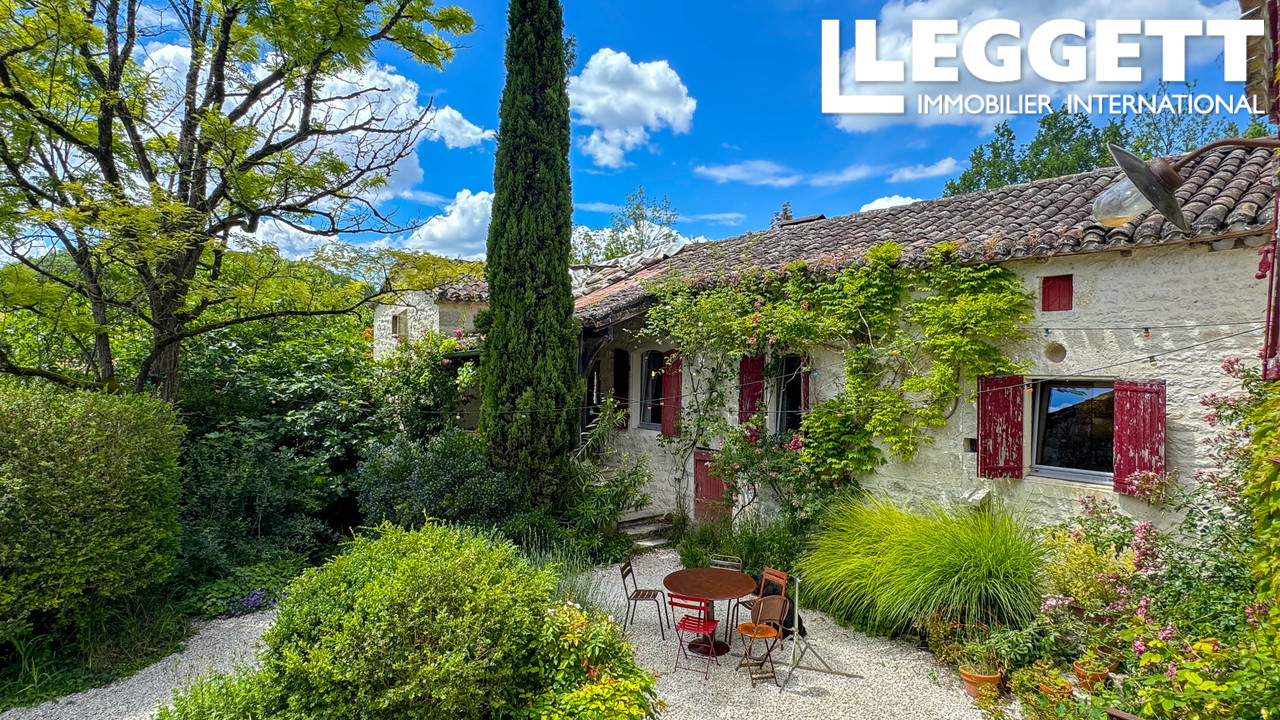 A28604NK46 - Cette propriété de caractère est située dans une route très calme dans un hameau paisible, à moins de 10 minutes de Montcuq. Une rénovation de haute qualité pour les deux propriétés utilisant uniquement des matériaux locaux (belles poutres, pierre...