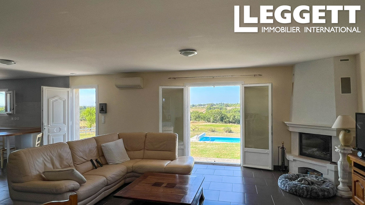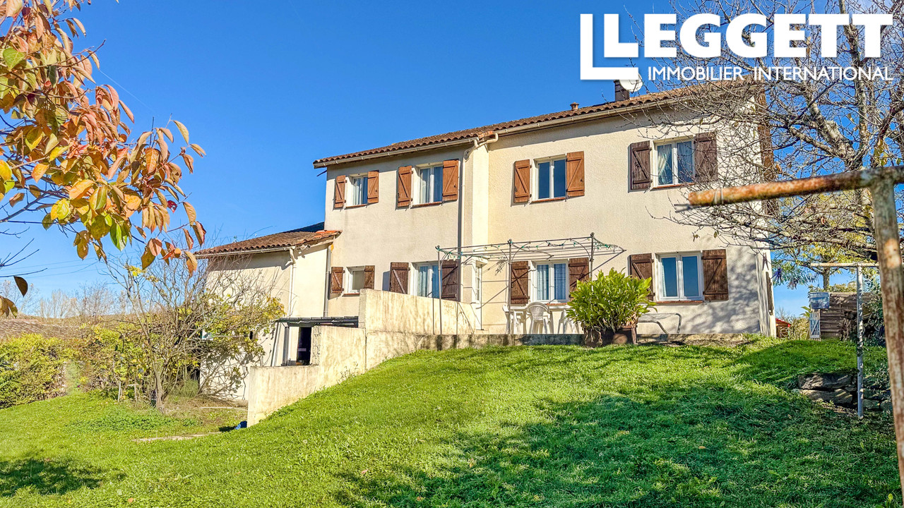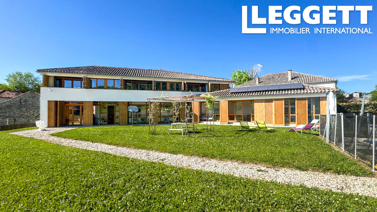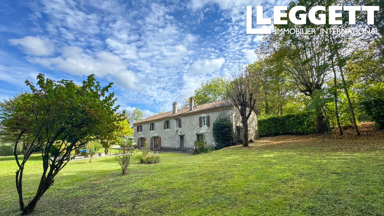 46 800 - Montcuq en Quercy Blanc - Ensemble immobilier de près de 420 m² habitables, 18 pièces, 11 chambres au total, 9 salles d'eau, 1 salle de bain, sur terrain arboré de plus de 2.5 Ha, avec piscine, espace bien-être, véranda, plusieurs dépendances.