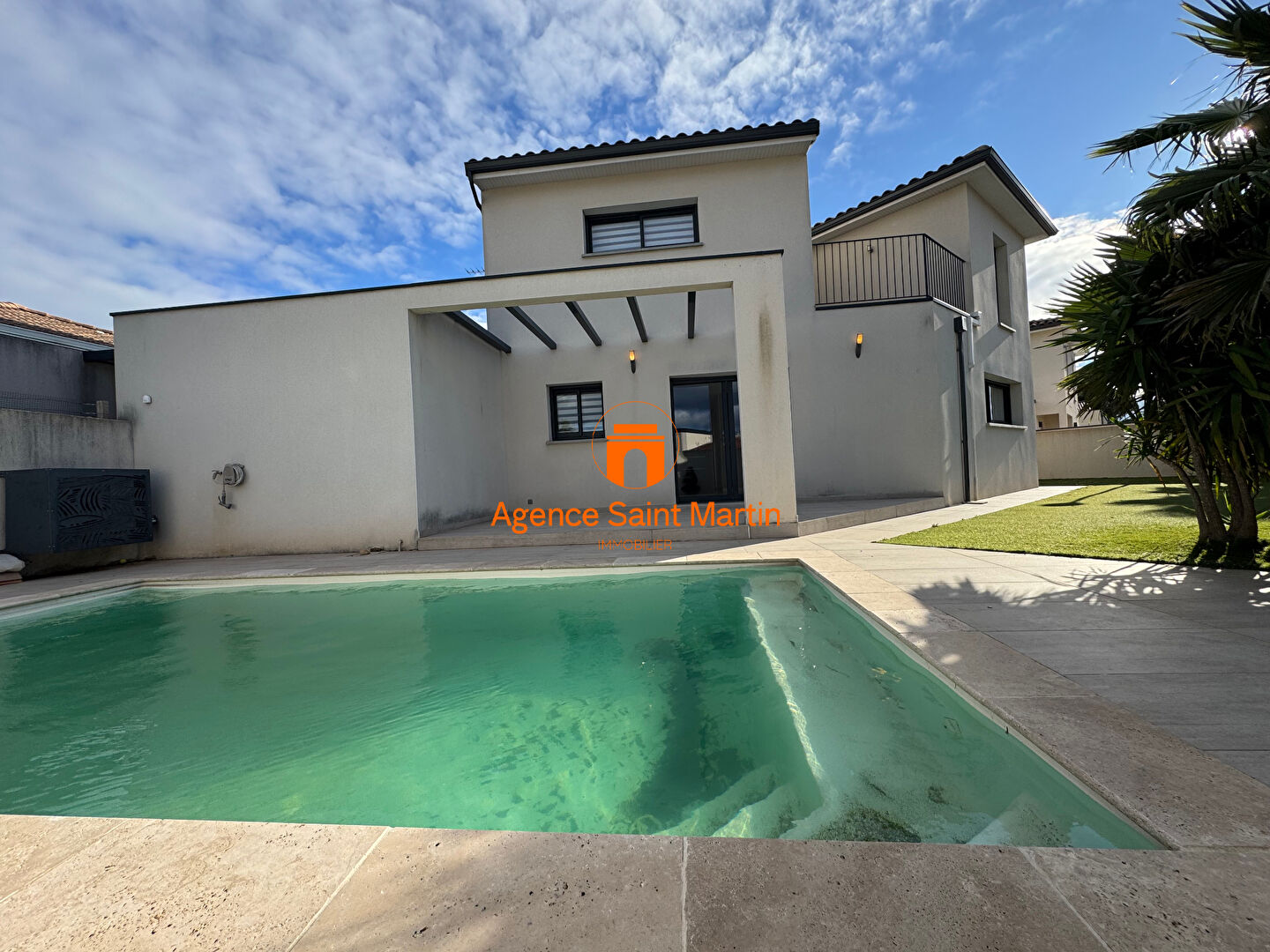 Quartier des Champs, Belle Villa Contemporaine de 146 m² (dont 128 m² habitables) édifiée sur 373 m2 de terrain clos et arboré avec Piscine. En Rdc : Belle Pièce de Vie lumineuse avec Cuisine entièrement Aménagée et Equipée ouvrant sur une belle Terrasse, 1 c...