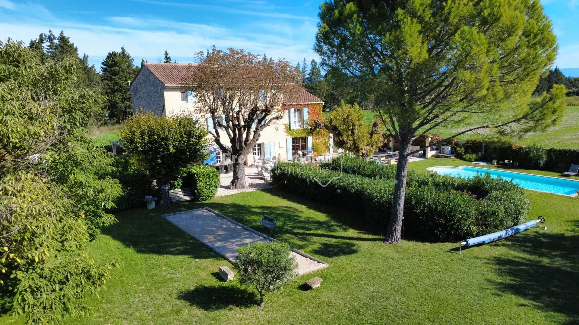 C'est un mas authentique, généreux et plein de vie. Dans un cadre paisible et verdoyant, ce mas de caractère vous accueille avec des volumes rares et une âme chaleureuse, idéale pour une grande famille ou des amoureux de convivialité.