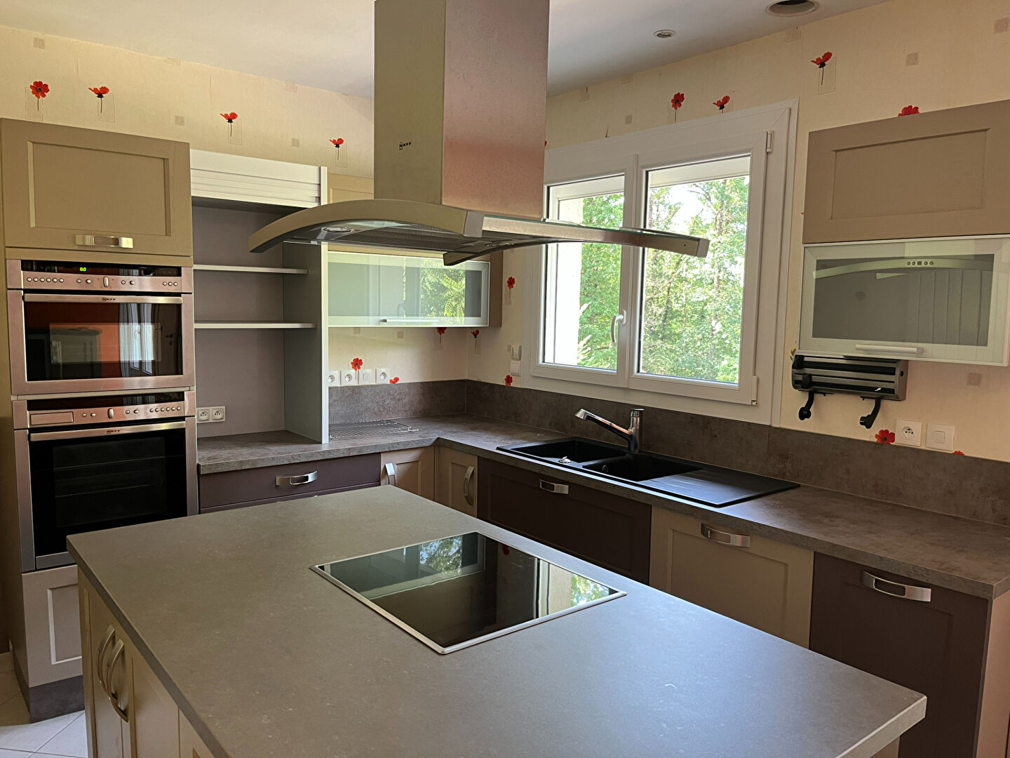 Maison en pierre de taille élevée sur sous-sol (construction 1964) avec vue dégagée, comprenant 3 logements distincts, un terrain clos et arboré, double garage.<...