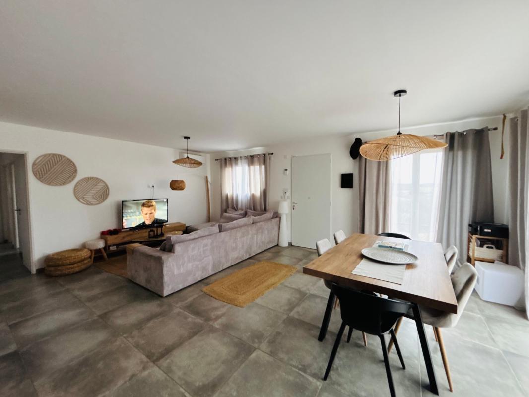 Elle est composée d'une pièce de vie de 45 m² avec cuisine entièrement équipée ouverte sur séjour et salon, trois chambres, salle d'eau et w.c. Un garage vient complété ce bien.