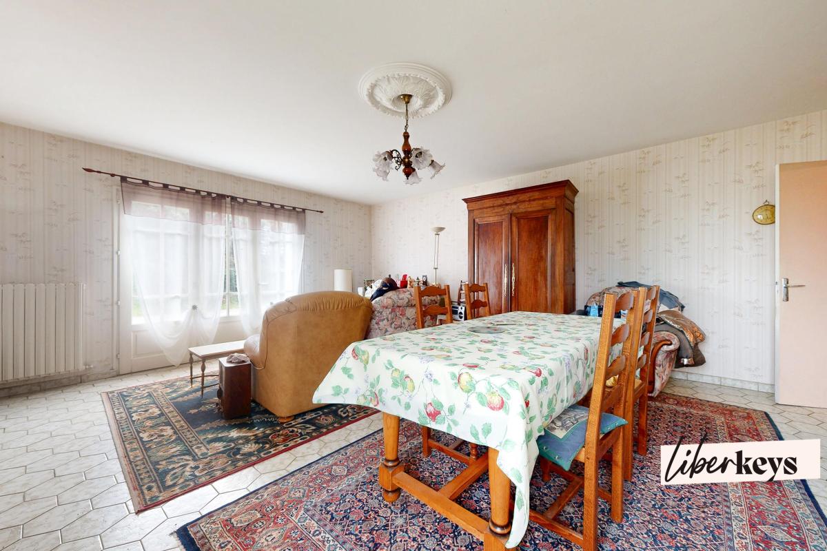 à proximité des commerces et écoles, maison d'habitation dont la répartition est la suivante : garage-chaufferie, petite véranda, entrée avec placard, cuisine aménagée et équipée récente, salon, wc au RDC ; dégagement avec placard, 3 chambres dont une av...
