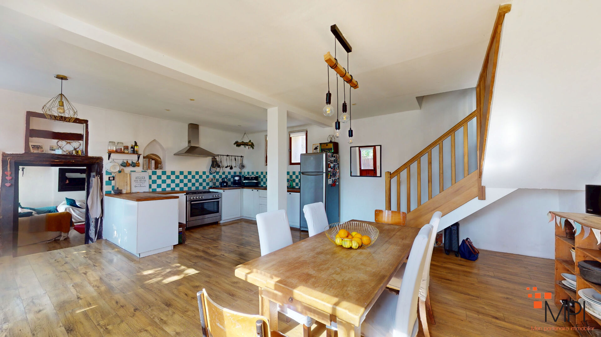 L'entrée avec placard dessert un salon-séjour avec cheminée, une vaste cuisine dinatoire aménagée et ...