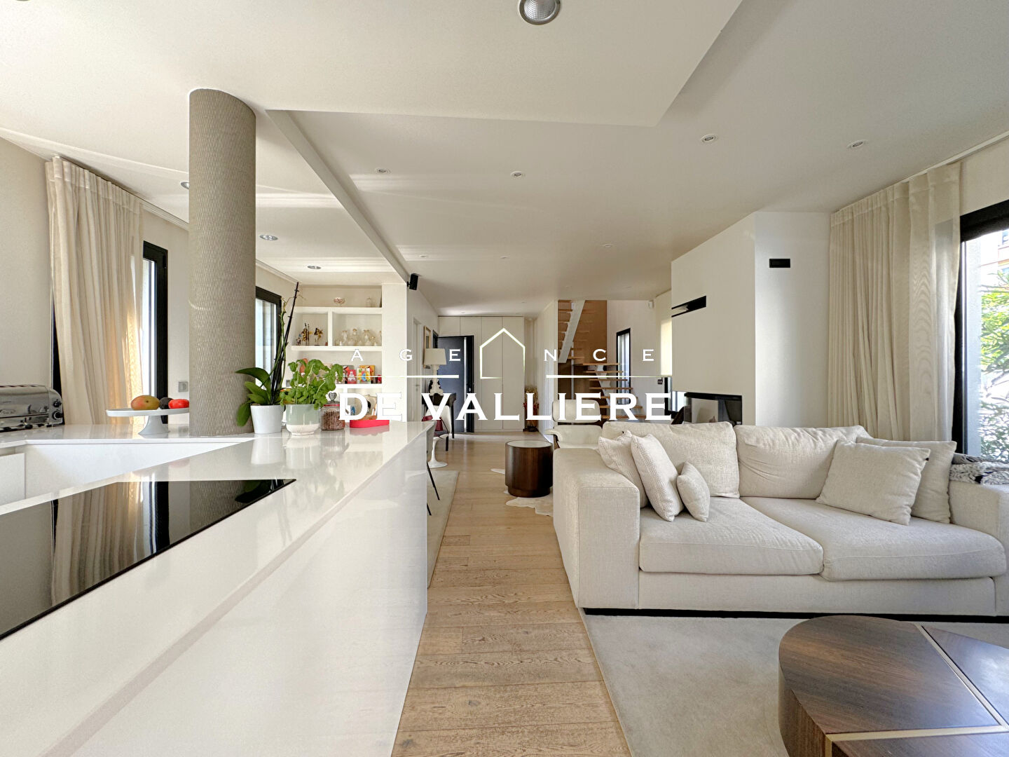 Située au calme dans le bas du Mont Valérien, cette belle maison d'une superficie totale de 206 m², baignée de lumière, est posée au sein d'une parcelle fleurie et sans vis-à-vis. Son architecture originale et très bien pensée la rende UNIQUE.
