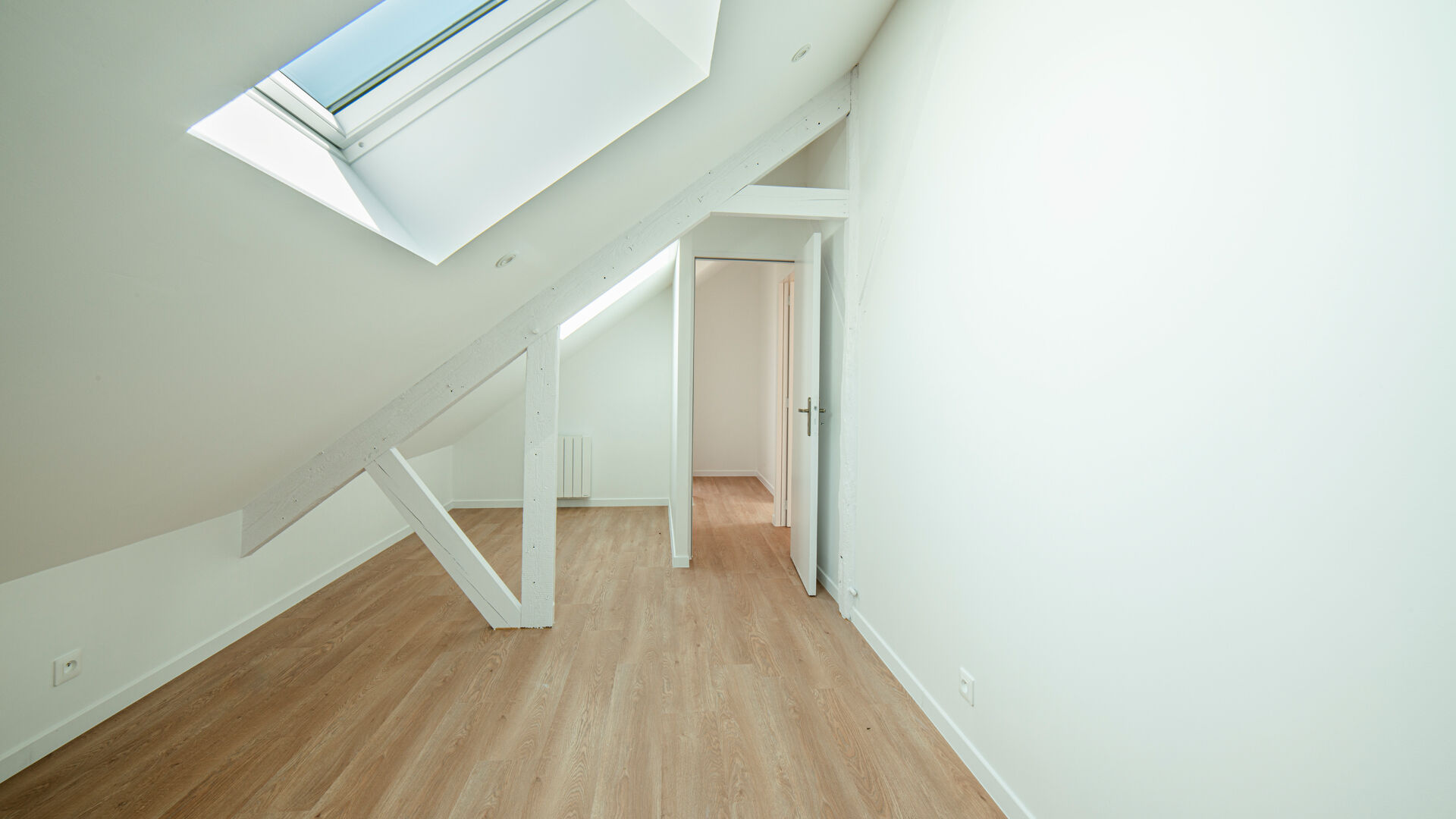 Pièce de vie d'un peu plus de 70m², traversante Nord-Sud.