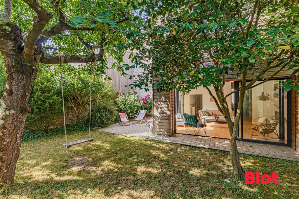 À l'abri des regards, au coeur d'un quartier vivant et recherché de l'ouest nantais, à proximité des bords de Loire et de toutes commodités, cette maison issue de la trans...