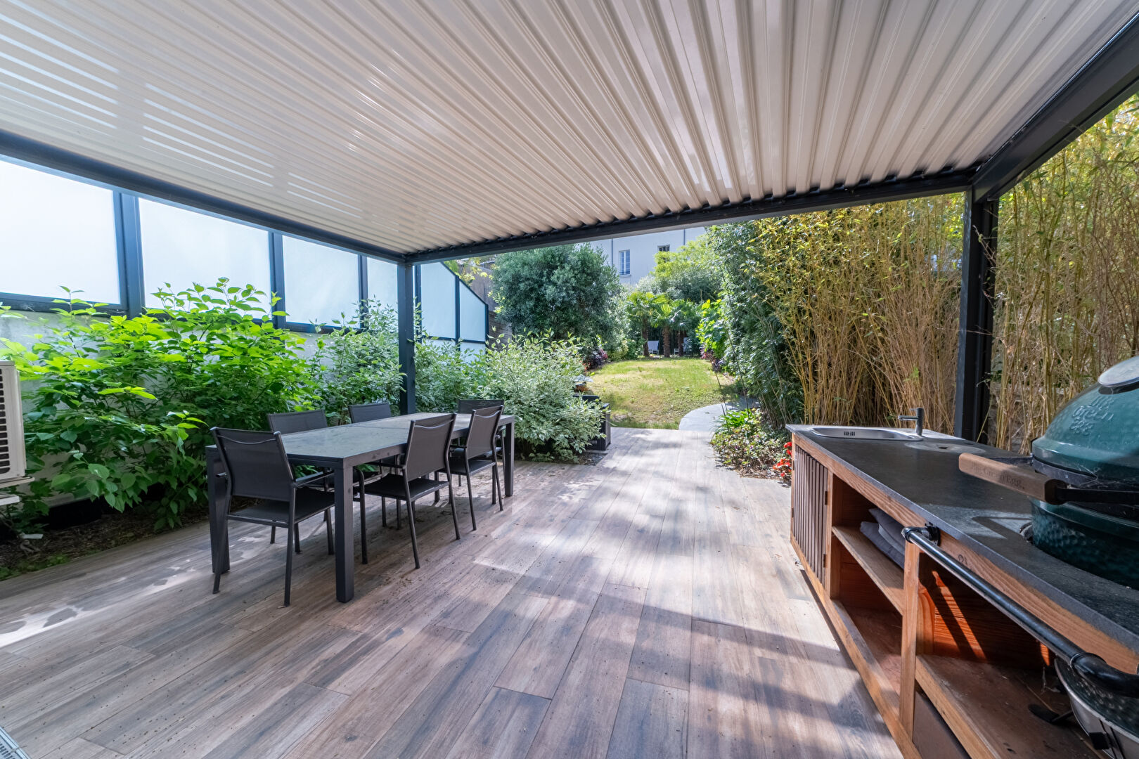 Située au coeur du très recherché quartier Saint-Pasquier, cette maison de 1890 rénovée en 2005 conjugue avec subtilité le charme authentique de l'ancien et la modernité d'espaces largement ouverts sur le jardin et sa piscine.
