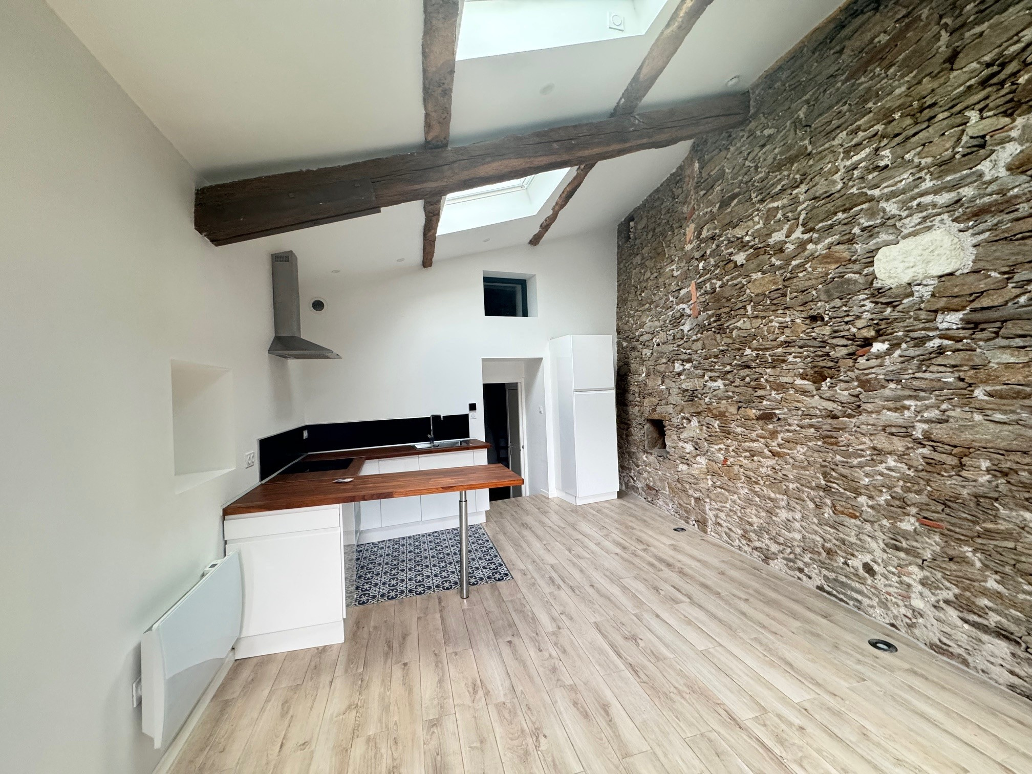 Nantes Saint-Jacques. Idéal 1er achat. Maison ancienne de 33 m2 au sol avec murs en pierre et poutres apparentes, au calme, dans un cadre atypique. Séjour avec cuisine ouverte, chambre, bureau et cave. Proche busway, tramway, écoles, crèche, commerces, parc pa...