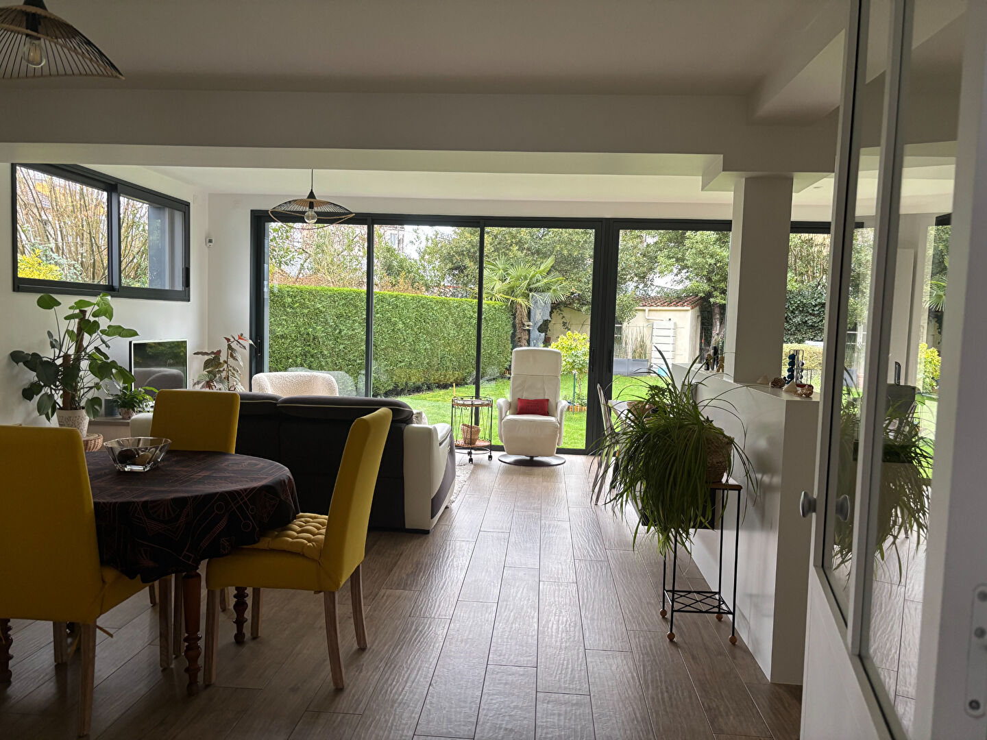 Grande maison en avenue privée sur très joli jardin offrant : Au rez-de chaussée : spacieux espace de vie avec cuisine américaine meublée et équipée donnant sur jardin (extension 2020), lingerie, chambre et salle d'eau au rez-de-chaussée, wc. A l'ét...