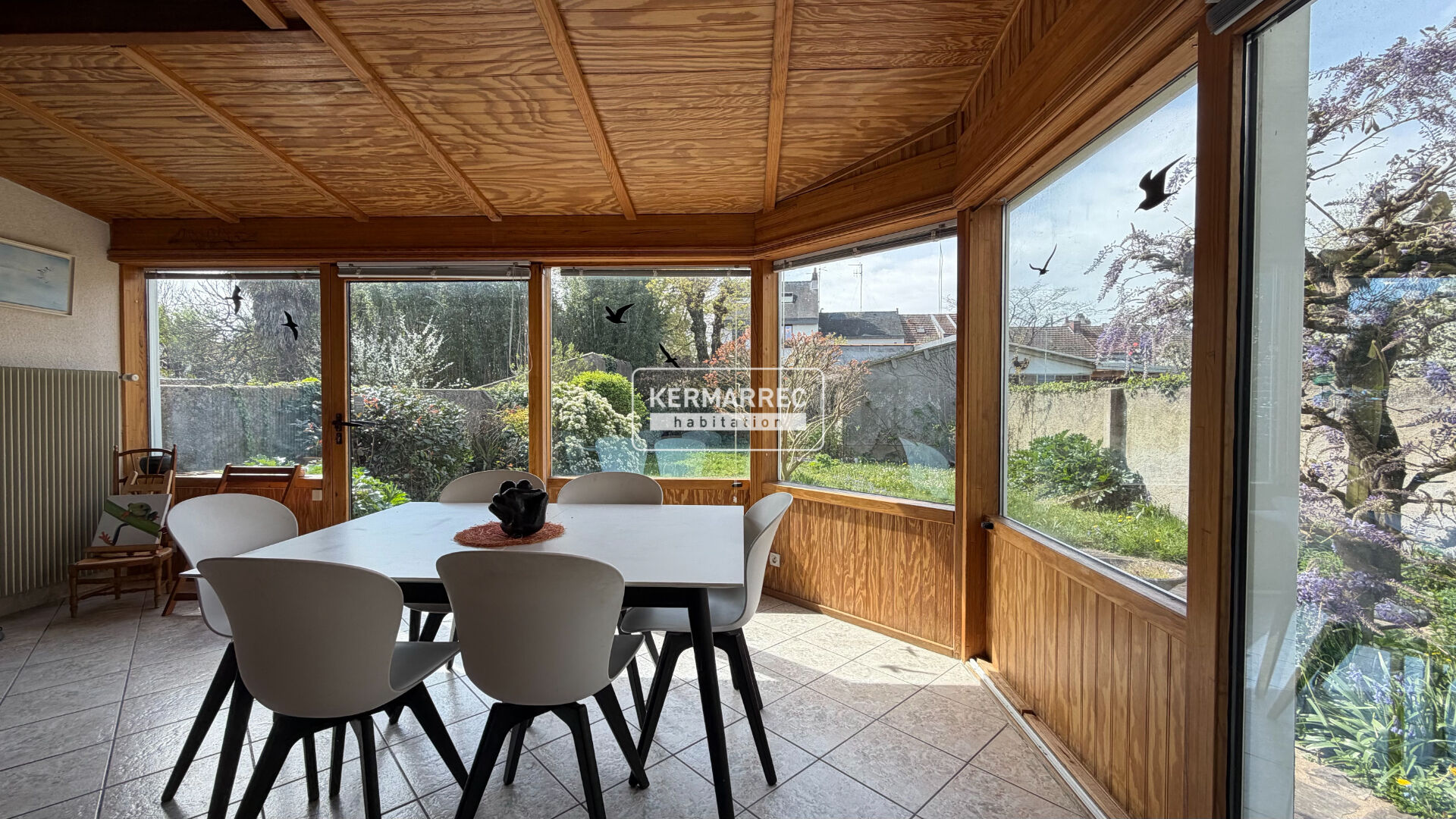 Au rez de chaussée, l'entrée se fait par une très belle véranda de 2021 (toujours sous décénnale) orientée ouest, et baignée de lumière tout au long ...