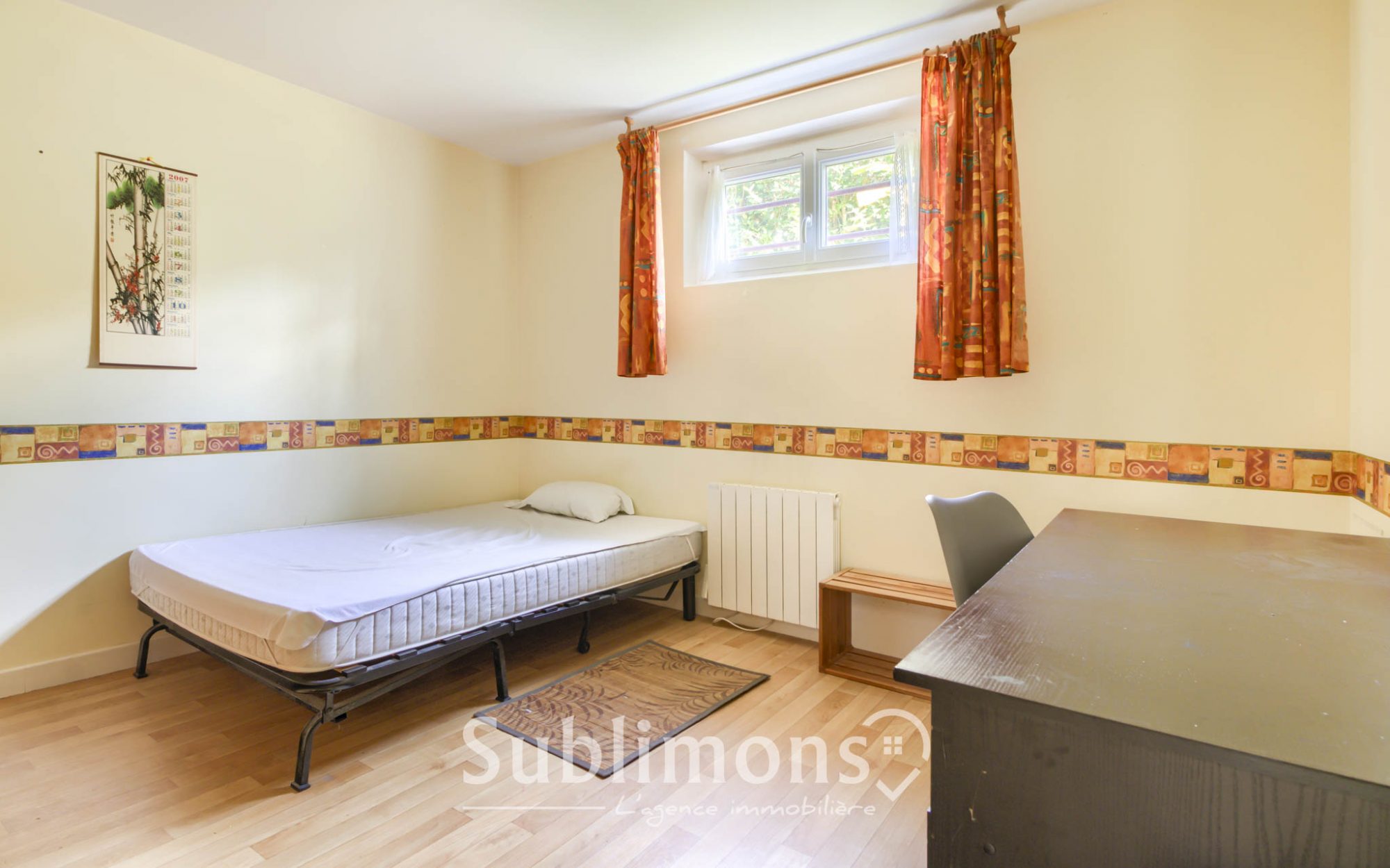 Grande maison en avenue privée sur très joli jardin offrant : Au rez-de chaussée : spacieux espace de vie avec cuisine américaine meublée et équipée donnant sur jardin (extension 2020), lingerie, chambre et salle d'eau au rez-de-chaussée, wc. A l'ét...