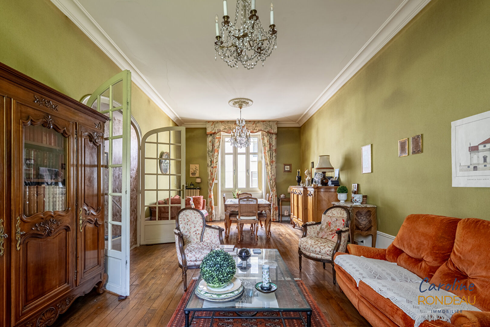 Maison familiale ancienne de charme sur beau jardin arboré Sud. Double réception sur parquet, cuisine aménagée et équipée, chambre avec salle d'eau. A l'étage : 3 chambres avec salle d'eau. Au sous-sol : bureau, salle de jeux, buanderie, grand g...