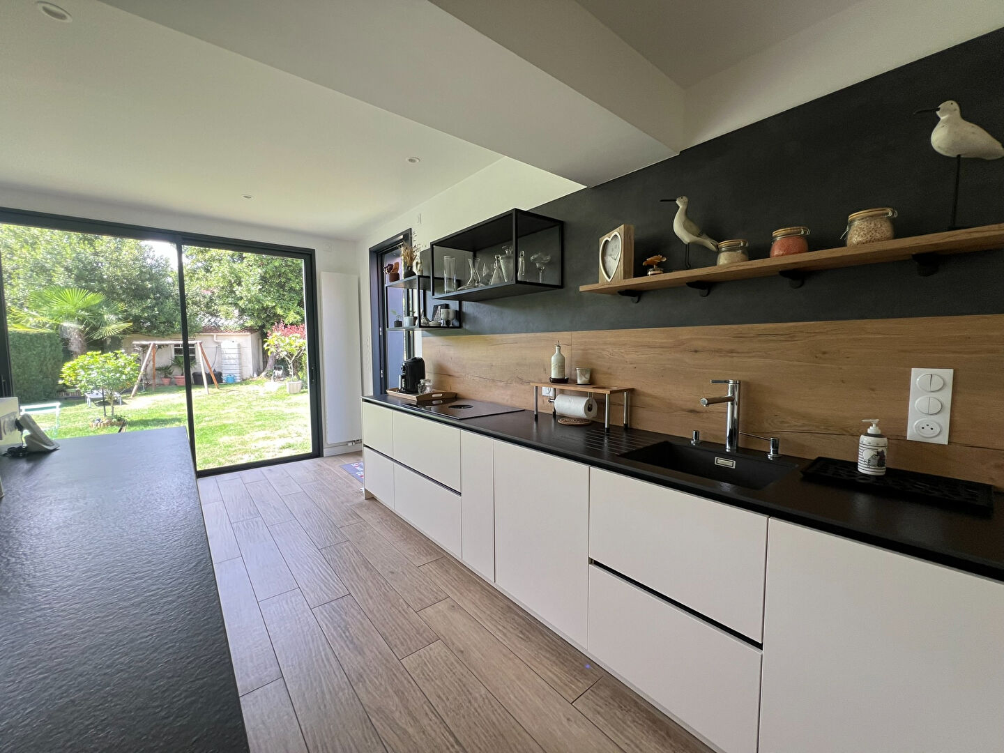 Grande maison en avenue privée sur très joli jardin offrant : Au rez-de chaussée : spacieux espace de vie avec cuisine américaine meublée et équipée donnant sur jardin (extension 2020), lingerie, chambre et salle d'eau au rez-de-chaussée, wc. A l'ét...
