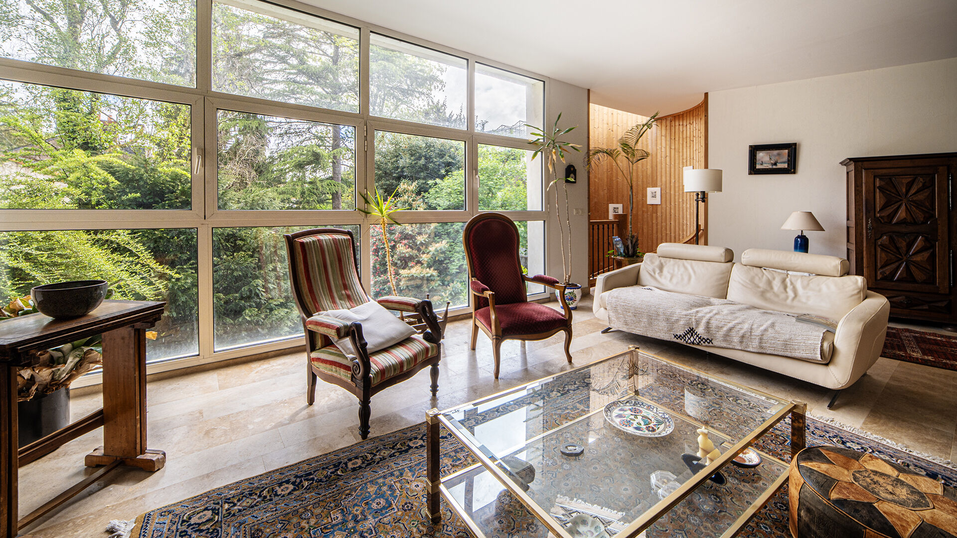 La pièce de vie, baignée de lumière grâce à une v...