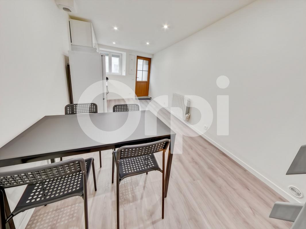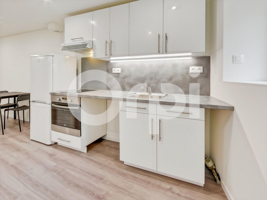 Maison de ville offrant une pièce principale avec coin cuisine équipée, étage avec palier, salon ou chambre, salle d'eau avec wc et une chambre sous comble. Chauffage électrique. Fenêtres PVC avec volet roulant électriq...