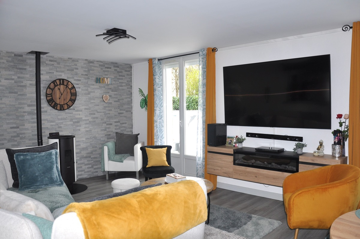 Maison familiale rénovée avec garage et dependance. Maison familiale de plain-pied avec combles aménagés, contemporaine et tout confort située à deux pas de toutes les commodités. <BR>Elle se compose de 3 chambres, toutes au rez-de-chaussée, d'un bu...