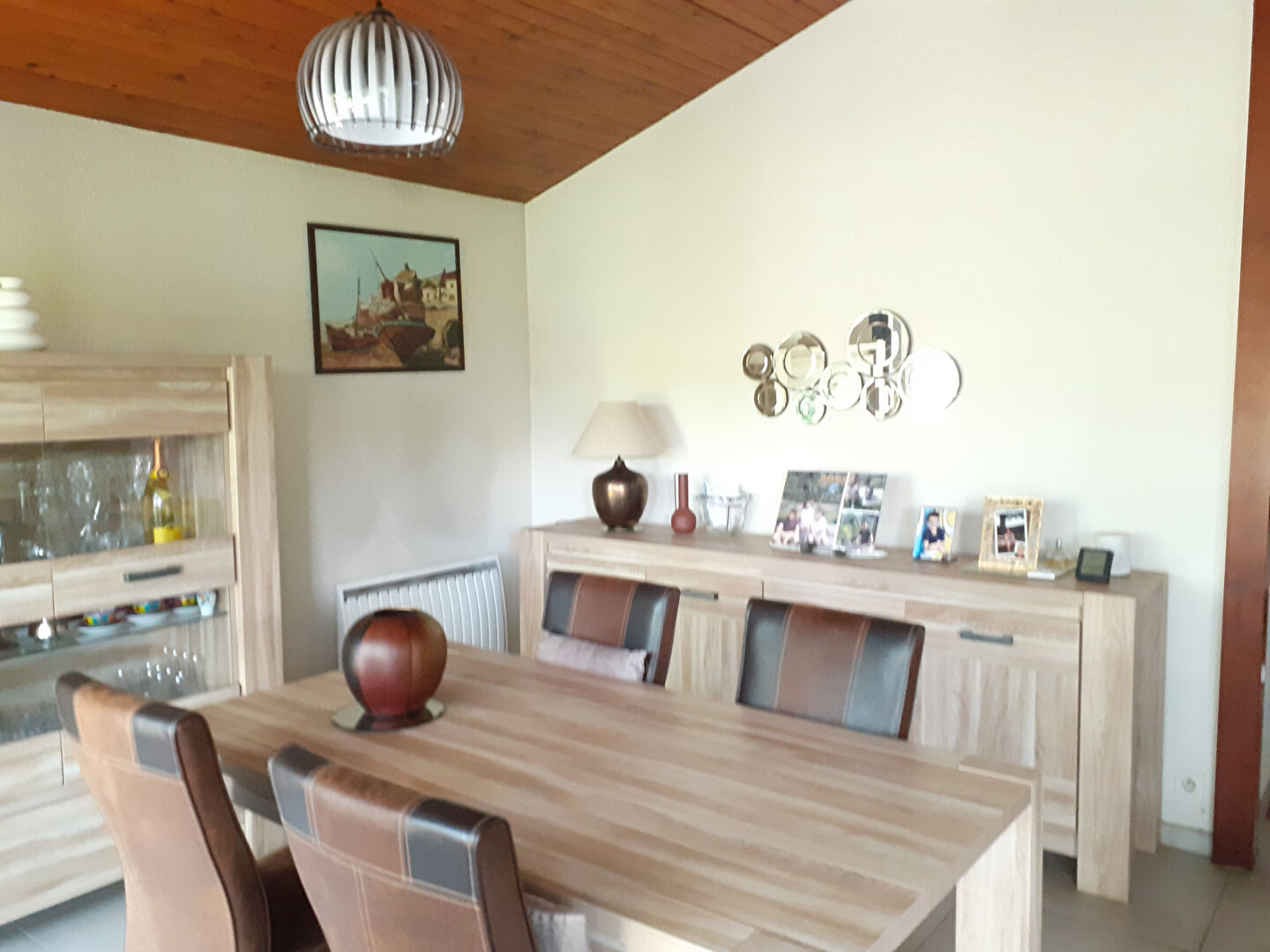 Cette maison des années 80 est composée au rez-de-chaussée d'une entrée, un salon salle à manger équipé d'un poêle à bois, donnant sur une terrasse, exposée Sud Ouest, dotée d'une pergola bioclimatique de 30 m², une cuisine aménagée et équipée, ...