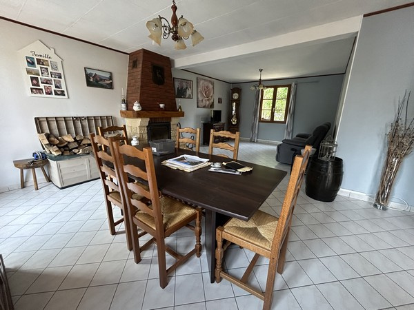 Au rez-de-chaussée: Salle à manger salon avec poêle à bois et chauff...