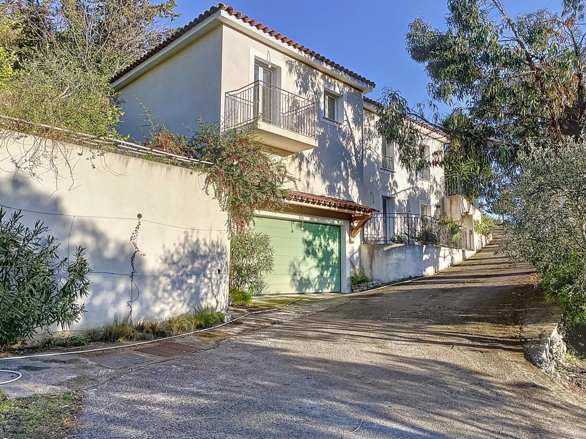 Sur les collines de Nice, quartier Saint Pierre de Feric, villa individuelle contemporaine récente sise sur un terrain de 650m2 en restanques.