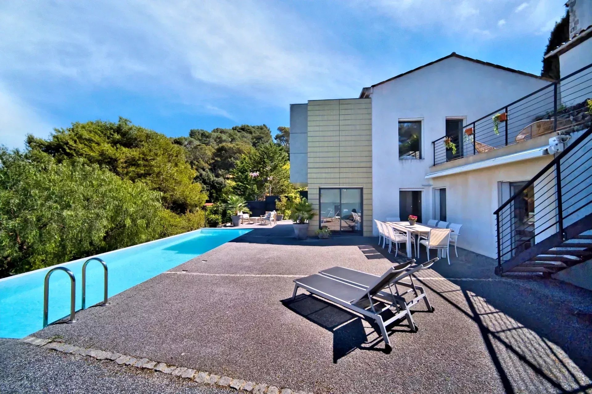 Charme, volumes et prestations pour cette villa 5 pièces avec piscine, vue mer et jardin paysager.
