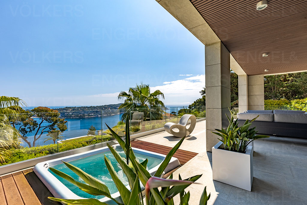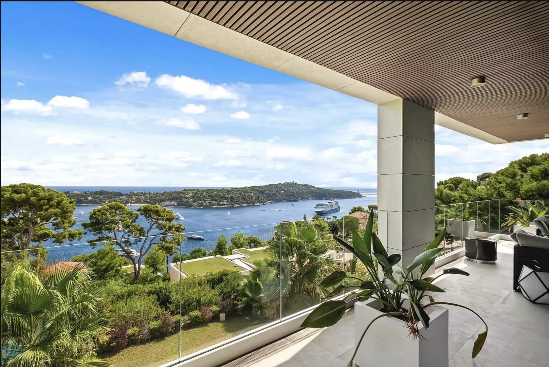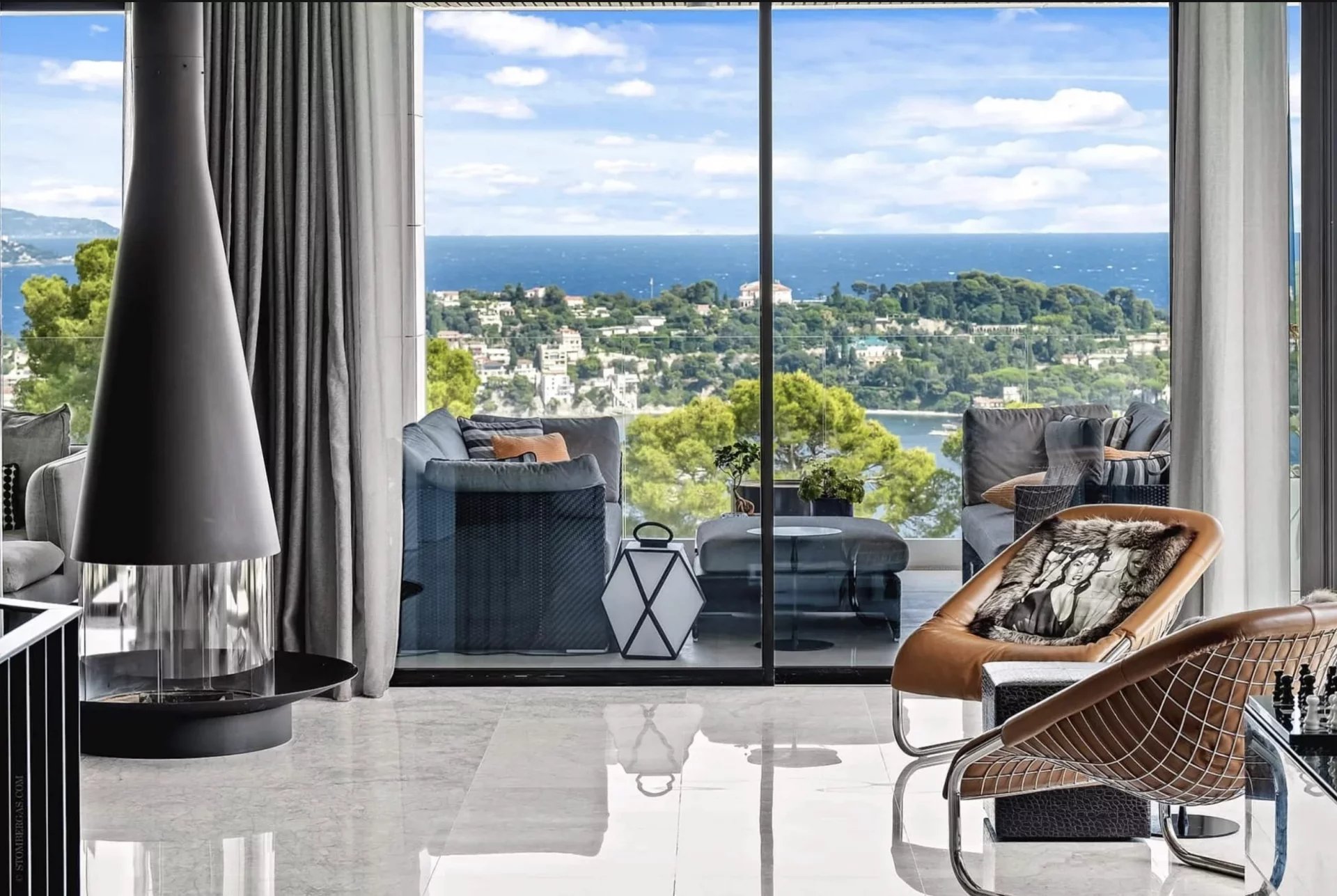 Située à seulement cinq minutes de Villefranche-sur-Mer, dans le paisible et recherché quartier des Hespérides, cette somptueuse villa contemporaine offre une vue panoramique à couper le souffle sur la baie et le Cap Ferrat.