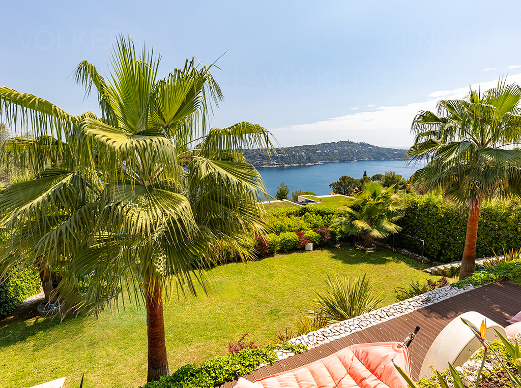 Cette magnifique villa lumineuse, avec plusieurs terrasses, des jardins paysagers et de belles vues sur la mer sur la baie de Villefranche et le Cap Ferrat.