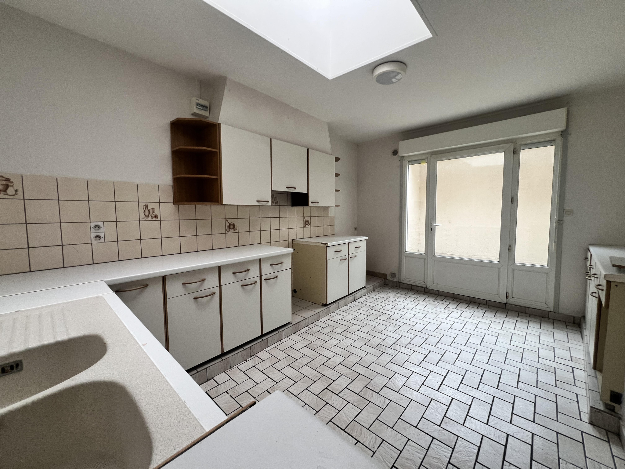 Maison de ville à rénover intégralement, offrant au rez-de-chaussée un double séjour et une cuisine. Aux étages, on retrouve 3 chambres, une salle de bains, un espace de rangement et un grenier aménageable d'environ 30 m2.