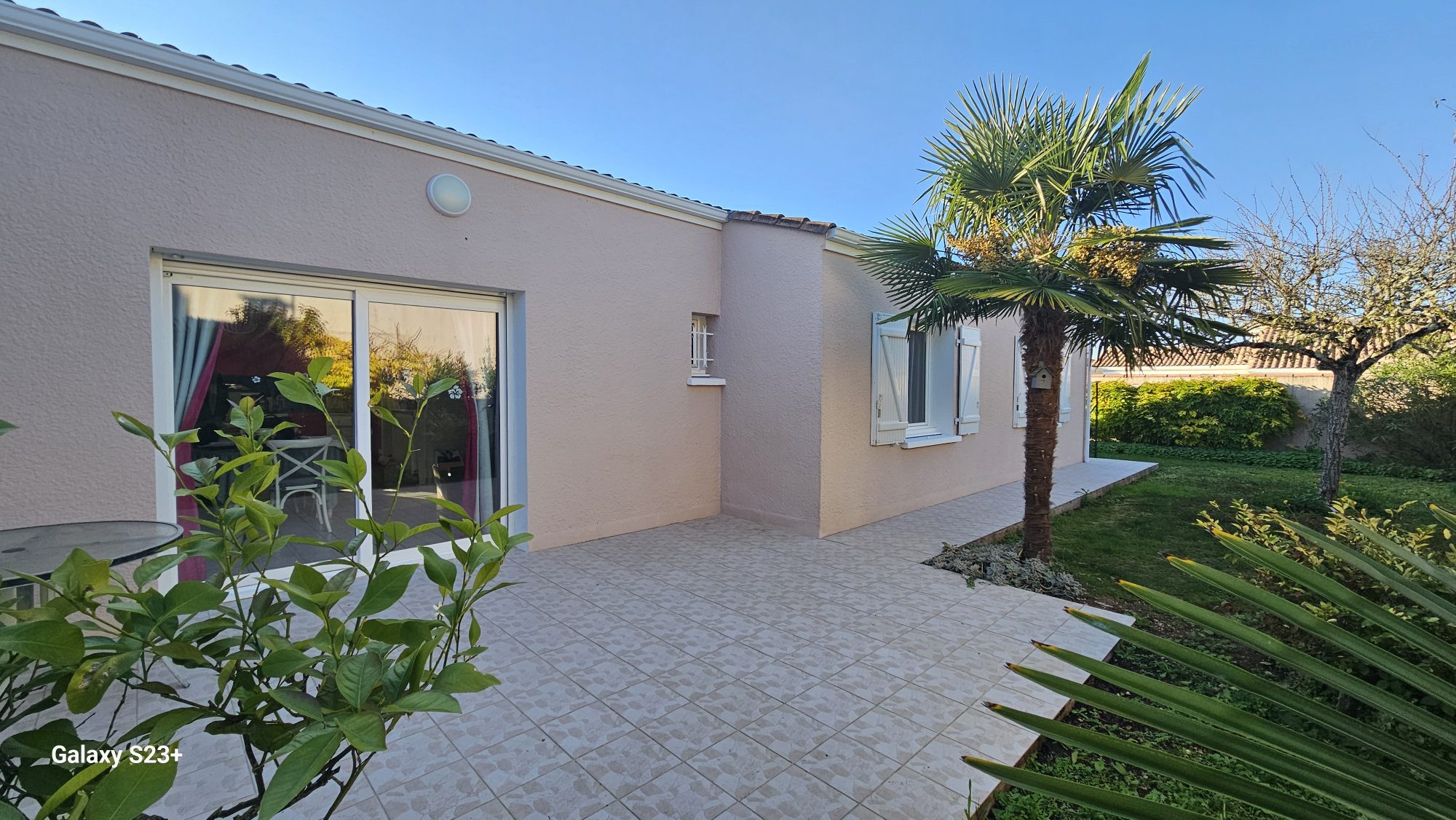 Niort Ste Pezenne dans un quartier calme et résidentiel, beau pavillon de plain-pied d'environ 107 m² hab., comprenant : hall d'entrée avec placard, un grand séjour de 33 m² avec cuisine équipée donnant sur une grande terrasse, un salon avec baie alu...