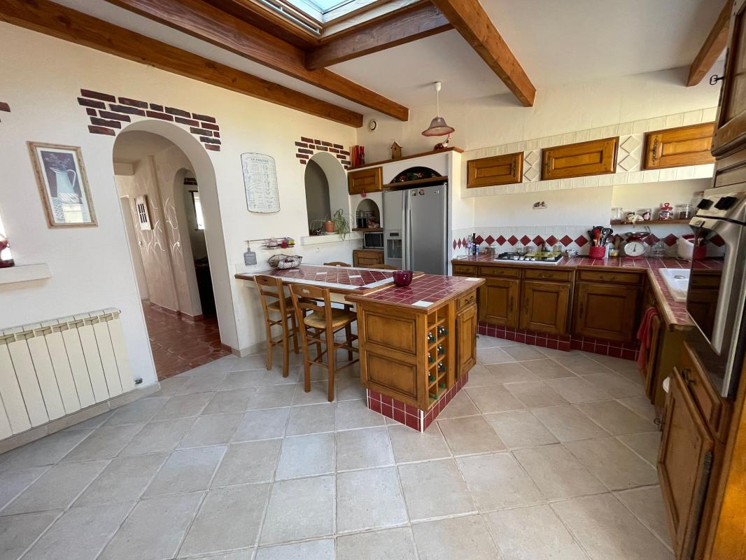Elle se compose d'une entrée, d'une grande cuisine aménagée et équipée ouverte sur la salle à manger, d'un salon, ...